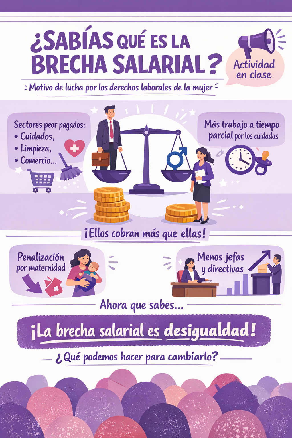 Cuando ha surgido el tema de la brecha salarial, se ha dedicado un tiempo específico a explicar qué significa realmente este concepto, diferenciando entre “cobrar distinto por el mismo puesto” y los factores estructurales que influyen en la diferencia salarial global (sectores, jornadas parciales, cuidados, acceso a puestos de responsabilidad, etc.), con el objetivo de que comprendan el término con rigor y sentido crítico.